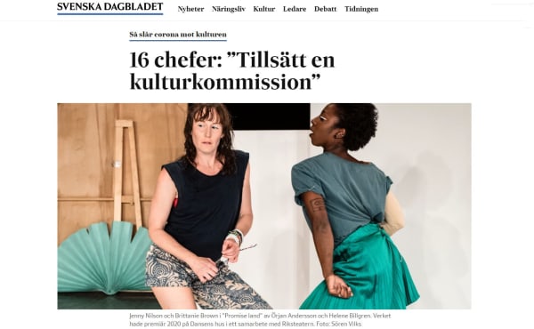 2021-04-21: De 16 kulturverksamheter som står bakom initiativet 1 000 dagar kultur presenterar idag 8 åtgärder i syfte att stärka kulturlivet för framtiden i en debattartikel i Svenska Dagbladet Kultur.