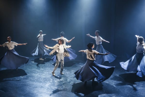 Bilden: Dervish-dans med ensemblen i De kommer att drunkna i sina mödrars tårar. Foto: Mats Bäcker.