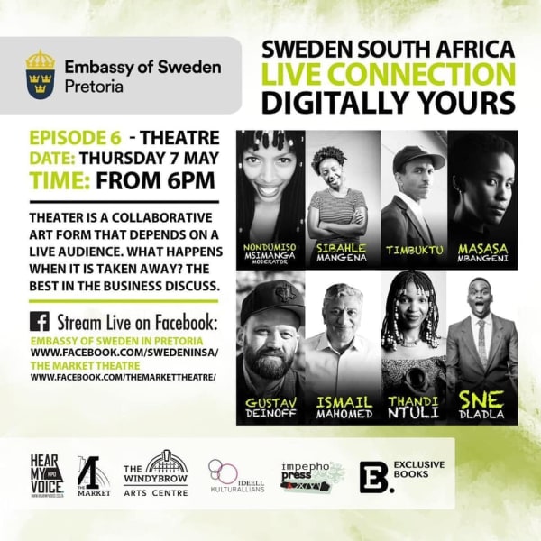 På livestreamingen den 7 maj medverkar också Thandi Ntuli, jazzpianist och sångare, Sne Dladla scenkonstnär som kombinerar musik, teater och komedi, Masasa Mbangeni skådespelare, Sibahle Prosper Mangena, skådespelare, Ismail Mahomed, vd för The Market Theater, Nondumiso Lwazi Msimanga, performancekonstnär samt den svenska artisten Jason Diakité / Timbuktu.