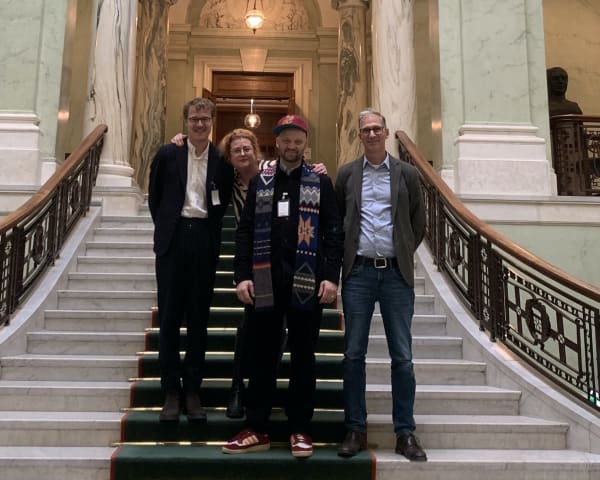 📸 Stefan Hansen, VD på Unga Klara, Ulrica Schenström, ordförande i Unga Klaras Vänner, Gustav Deinoff, konstnärlig ledare på Unga Klara och Johan Oljeqvist, ordförande i styrelsen för Unga Klara AB.