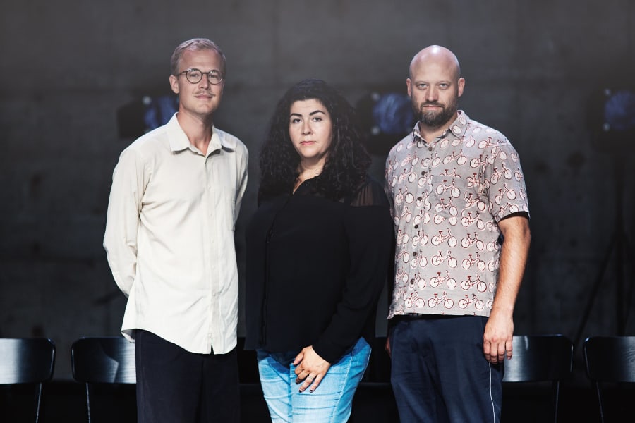 Gustav Deinoff, Stefan Hansen och Farnaz Arbabi. Foto Carlos Zaya.