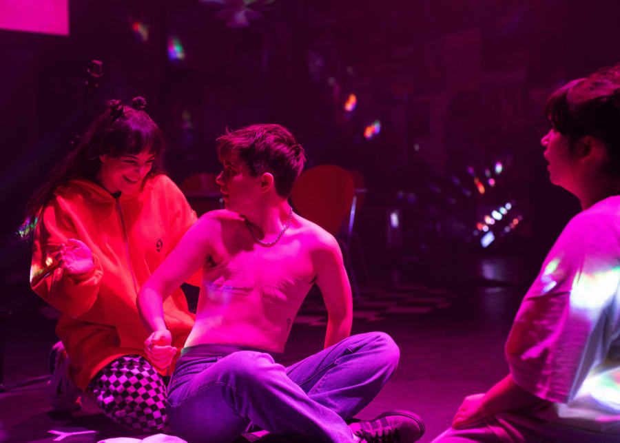 Nina Rashid, Emily Jankkila (praktikant från Teaterhögskolan i Malmö) och Elina Norén Sandberg. Foto av Märta Thisner.