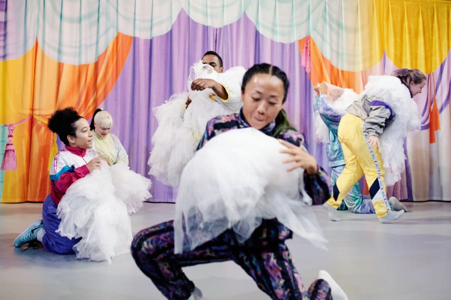 Ensemblen i För att jag säger det, med bla Catrine Lundell, Anna-Klara Dahlén, Hui-Han Hu, Yarien Rodriguez. Foto Carlos Zaya.
