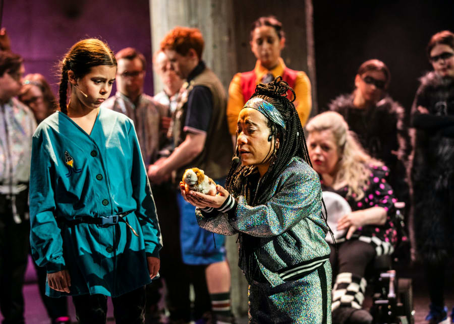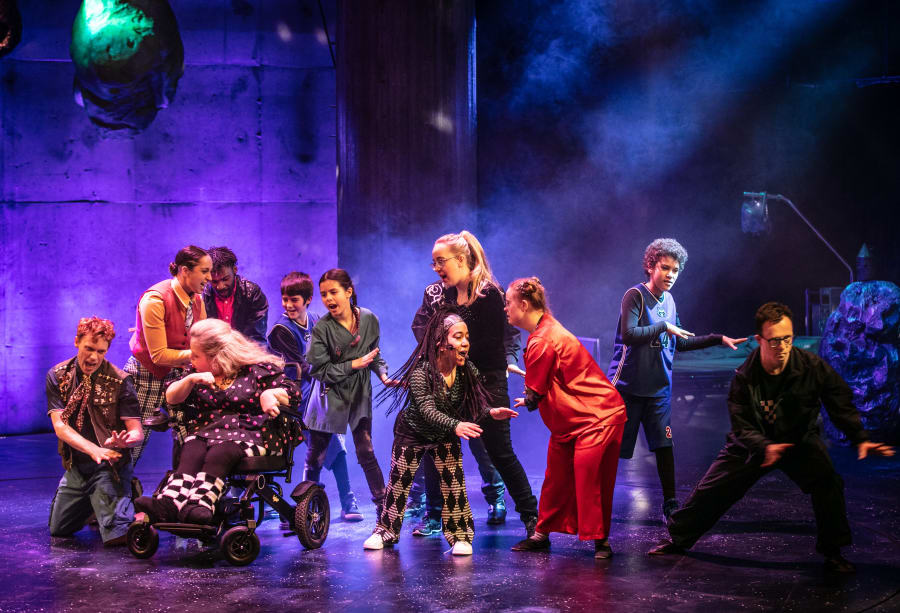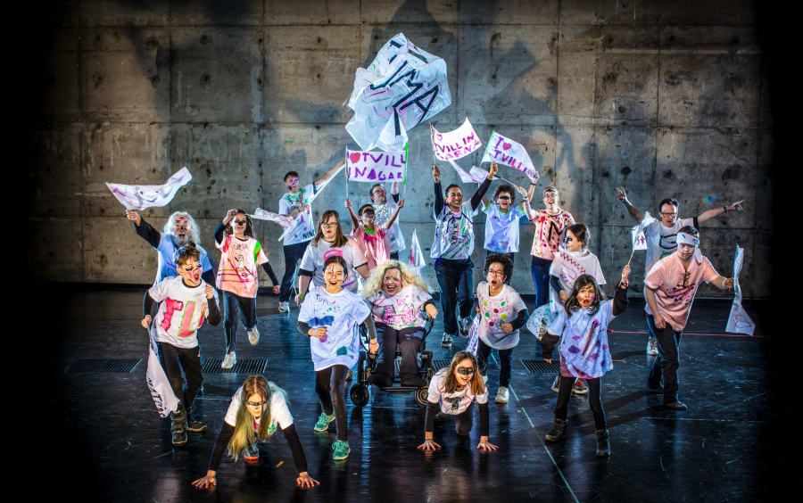 Ensemble: Eliah Lilja, Mila Castro, Ronya Basaran Tosun, Alma Huss, Amaya Hammarberg, Eira Castro, Ernesto Vera-Zavala, Tuva Huss, Vera Diop, Klas Lagerlund, Sepideh Khodarahmi, Luthando Jamda, Maria Wärme, Catrine Lundell, Roberto Gonzalez, Daniel Ennart, Göran Utas, Hannes Gradén, Malin Nord, Niklas Hjelmvik, Sofia Wittmark, Wilma Kinnman. Foto: Mats Bäcker.