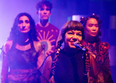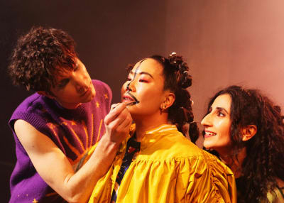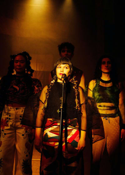 Scenen ramas in av Jenny Kronbergs lapptäckesinspirerade vepor, och i de blanka scenpodiernas sidor speglas publiken — symboliskt inkluderande.
