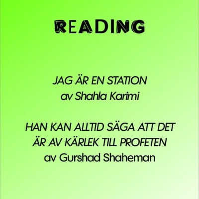 JAG ÄR EN STATION av Shahla Karimi och HAN KAN ALLTID SÄGA ATT DET ÄR AV KÄRLEK TILL PROFETEN av Gurshad Shaheman.