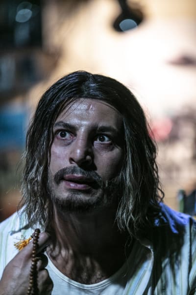 - Det är storslaget hur scenrummet vidgas och terrorns verkningar får ta bombastiska uttryck i form av projektioner, snurrande dervischdans och en upprepad utfodring med infernaliska skinkmackor.