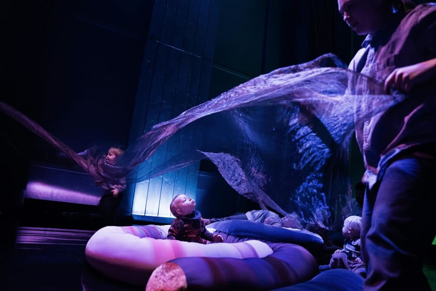 VERKLIGHETEN ÄR RUND är en samskapande dansföreställning för barn från 6 månader upp till 2 år och deras vuxna.