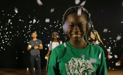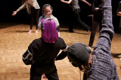 - Cirka 15 barn från ett mellanstadium i Haninge kommer in i studion. Var och en av dem kommer in rummet för sig och förses då förtroligt med hörlurar sen de berättat vilket språk de vill lyssna till. Några väljer turkiska, andra ryska och somliga engelska. Inte något av de med geografisk avlägsna språken, som också finns att välja på, som somaliska, eller dari som många av våra afganska flyktingar talar. De väljer sitt bekvämaste språk, för de ska få instruktioner för rörelser som de sedan själva utformar. Det är vad som blir till Koreografin.