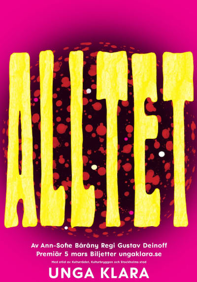 Alltet är en pjäs som handlar om de som står i början och slutet av sina liv. Med teatern som verktyg skapar vi ett rum för de yngsta och de allra äldsta att mötas i som inte annars finns. De får möta teater, konsten och de kan få syn på varandra. Men alla är välkomna till Alltet. Föreställningen vänder sig människor. Skaffa dig en mycket ung eller mycket gammal vän att göra sällskap med så kan ni boka era biljetter. Vi spelar offentliga föreställningar för tre generationer; barnen, de vuxna och de äldre. Det är teaterkonst för de allra klokaste, och förhoppningsvis rör vi om i vårt ålderssegregerade samhälle.