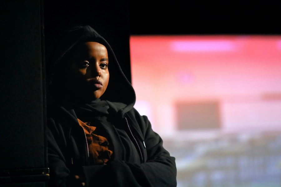 Farhiya Feysal var den första kvinna och den första utanför Stockholm att vinna Ortens Bästa Poet 2018. Inför en publik på 2500 personer reciterade hon Osäker grabb i Rinkeby Sporthall. Nu står hon framför en betydligt mer intim publik i en spokenword-monolog.
