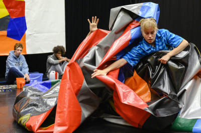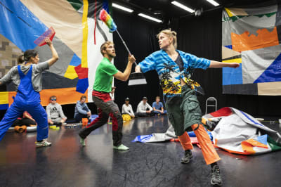 En dysfunktionell födelsedagsfest, öronproppar, överbliven presenning, en kratta och ett 50-tal andra vardagsföremål delar plats med tre dansare som försöker dansa en mycket exakt version av Våroffer.