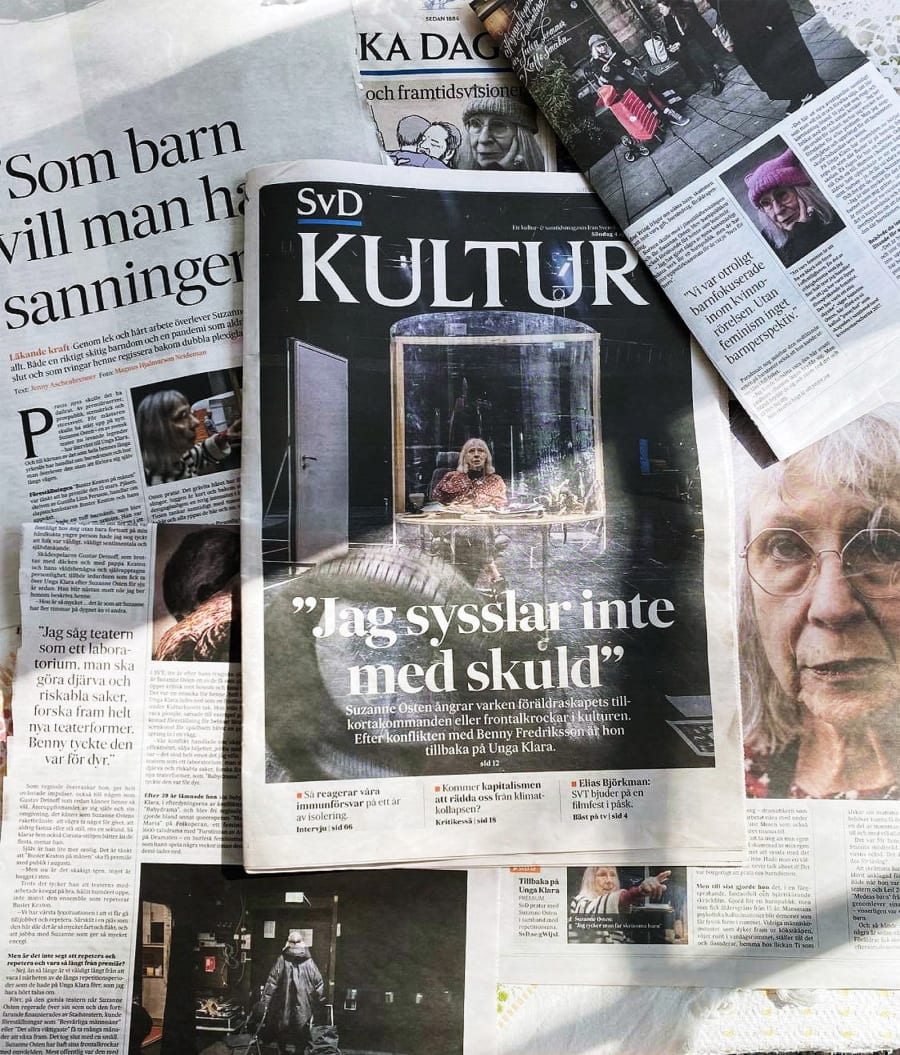 2021-04-06: Med anledning av att Suzanne Osten återvänder till Unga Klara efter 8 år med pjäsen Buster Keaton på månen av Gunilla Linn Persson gör journalisten Jenny Aschenbrenner en stor intervju med mästerregissören i Svenska Dagbladet Kultur den 4 april.