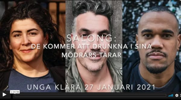 Under våren 2021 arrangerar Unga Klara en gång i månaden digitala salongssamtal som tar upp och belyser teaterns arbete med föreställningen De kommer att drunkna i sina mödrars tårar utifrån olika perspektiv.