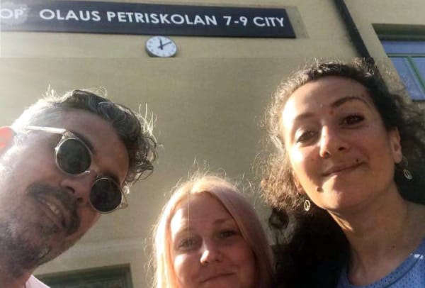 På bilden: Julian Vigil, pedagog, Johanna Emanuelsson, dramatiker och Parwin Hoseinia, skådespelare.
